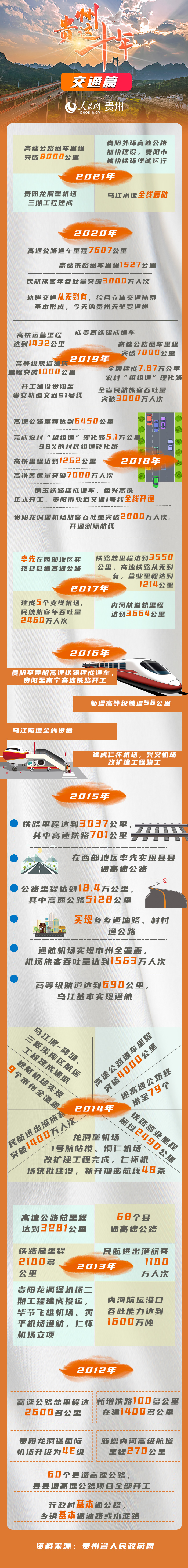 十年来,贵州坚持交通先行,交通事业取得历史性成就,初步构建了高速公路、高速铁路、民航等综合立体交通网络,为脱贫攻坚和经济社会发展构建新支撑,为贵州高质量发展奠定了坚实基础。